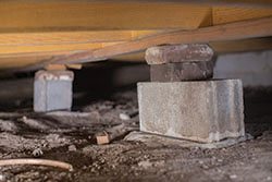 The main causes of uneven floors are settling concrete slabs, foundation heave, and failing crawl space joists. If the floor in question is above your crawl space, we will provide additional support using crawl space support jacks, which will raise and level the floor. If the issue is with your foundation, foundation piers can be installed to restore your floor to its original position and stabilize it.